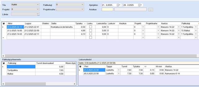 Samalla tavalla voit määritellä muutkin mahdolliset työaikalisät.