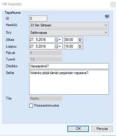 Kuva: HR-kalenteritapahtuman kirjaus