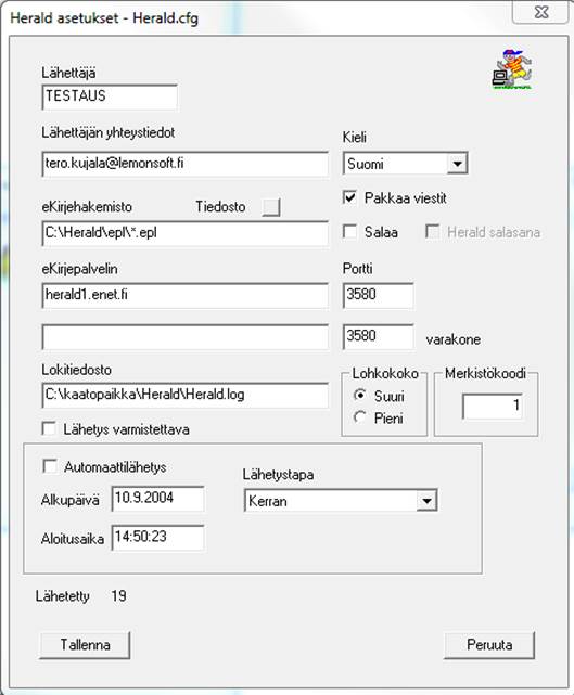 Aineiston kansio ja tiedostonimi tulee määrittää samaksi kuin Postin Herald -ohjelmassa määritelty polku on (josta tiedostot siirretään Postiin).