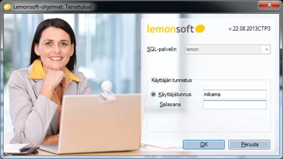 Lemonsoft -tunnistus näkyy kirjautumisruudussa alla olevan kaltaisena.