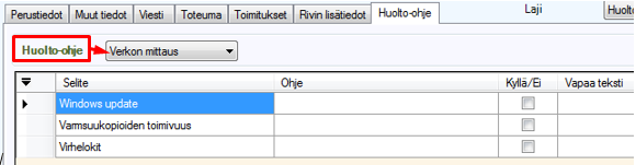 Valitse huoltotyölle määritellyistä huolto-ohjeista sopiva huolto-ohje -pudotusvalikosta.